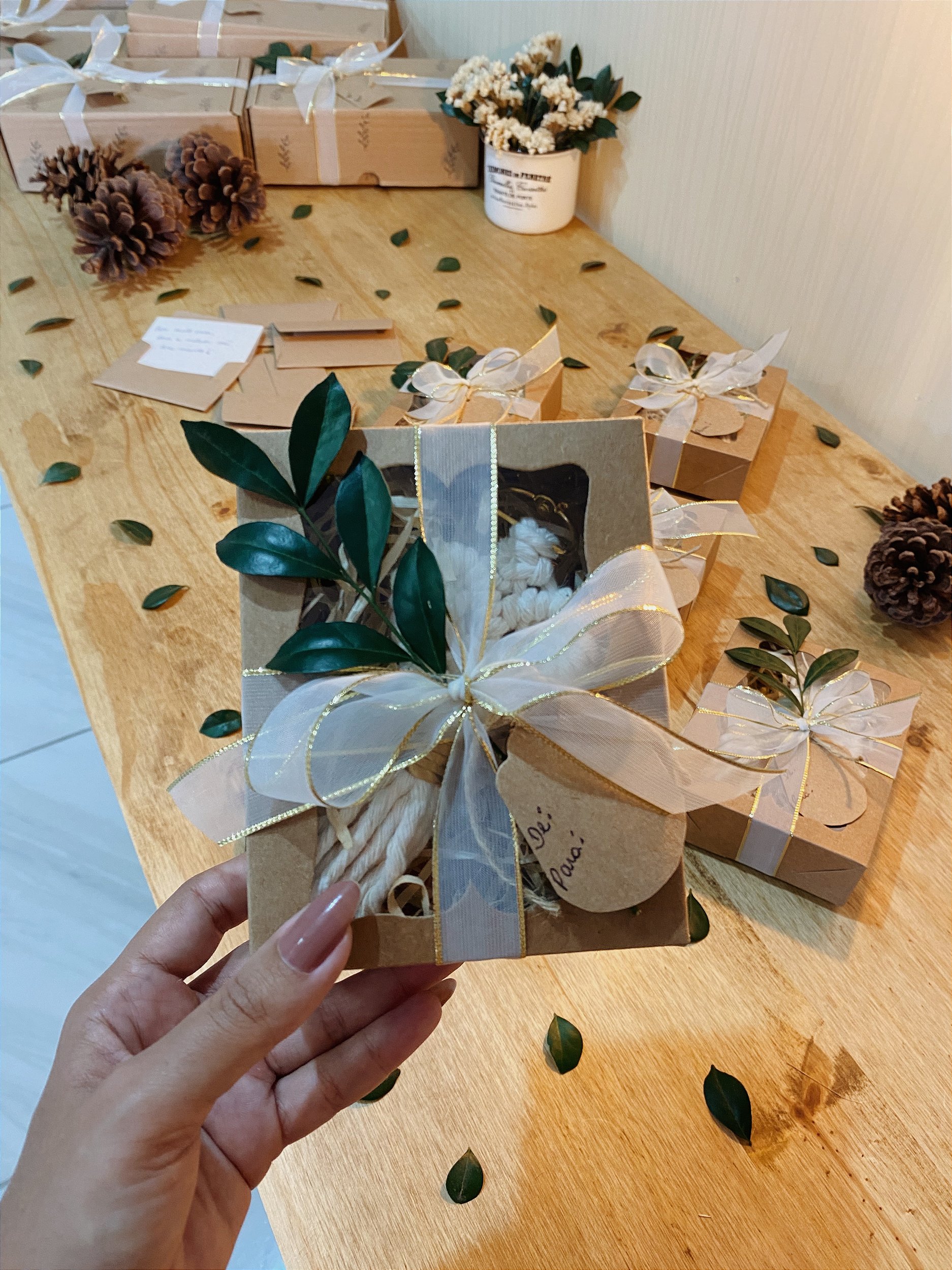 Todos os kits vão em uma caixinha super fofa prontinha para presentear, cartão manuscrito (opcional) e flores desidratadas decorando.
